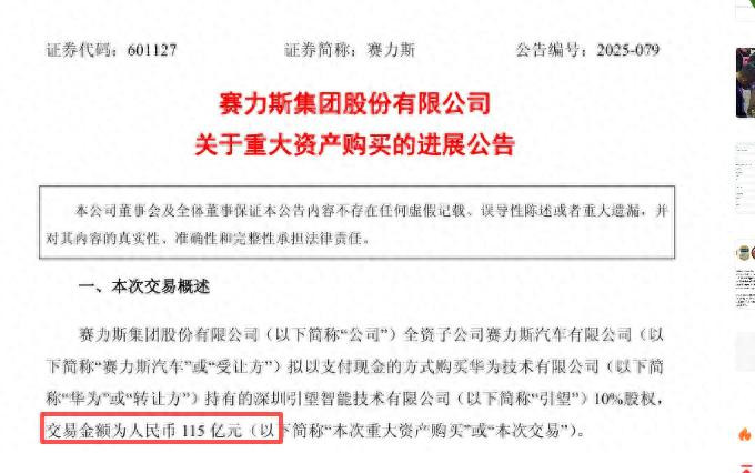 你觉得赛力斯这115亿花得值吗?它能摆脱对华为的依赖,成为真正的行业巨头吗?评论区聊聊你的看法!