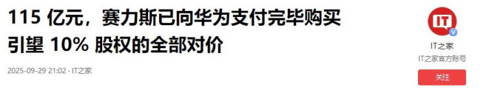 2025年上半年赛力斯净利润才29.41亿,这115亿差不多是近两年净利润总和。对比一下,长安让阿维塔买引望10%股份也是115亿,但长安家大业大,赛力斯敢这么砸钱,足见它赌得有多狠!
